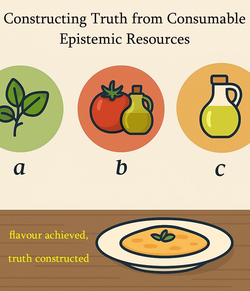 Overall, we suggest that truth is a construct shaped by the correct resources at hand to derive a proposition and the care with which we use them. Like a well-prepared dish or a carefully reasoned argument, truth emerges through action, i.e., through the thoughtful consumption of evidence, context and inference.